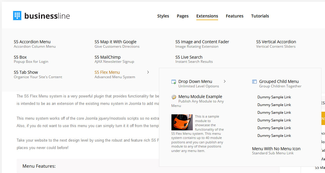 Take your website to the next design level by using the robust and feature rich S5 Flex Menu System. Organize your links with ease and show content in places you never could before!